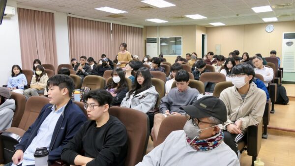 圖說:林明昕政委於國立高雄大學進行專題演講,逾百位法學院師生前來聆聽。