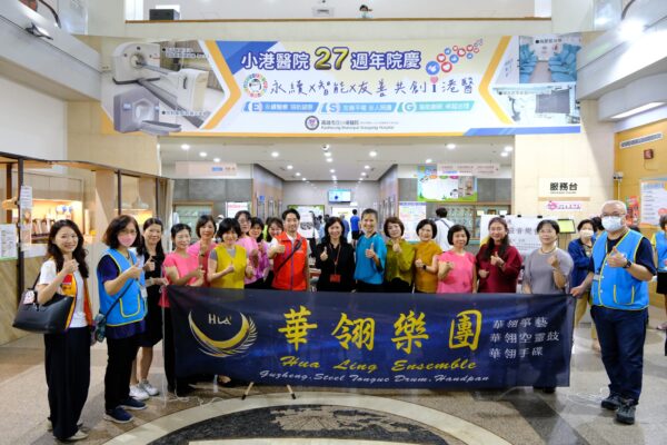 陳妤榛 / 為感謝第一線醫護人員長期守護市民健康的辛勞付出,高雄市群英獅子會聯合華翎樂團(黃文玲老師)與高雄市立小港醫院,8日在院內舉辦一場溫馨感人的「快閃醫護公益音樂會」,以音樂傳遞關懷與支持,讓繁忙且緊繃的醫院能增添一抹溫暖的樂章。
