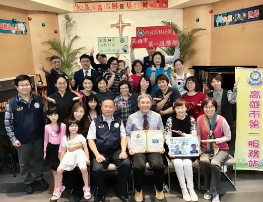 圖說一:移民署南區事務大隊高雄市第一服務站主任徐志權頒發「馬偕計畫永久居留證」予韓國籍金基文牧師,感謝金牧師三十五年來為臺灣的奉獻。
