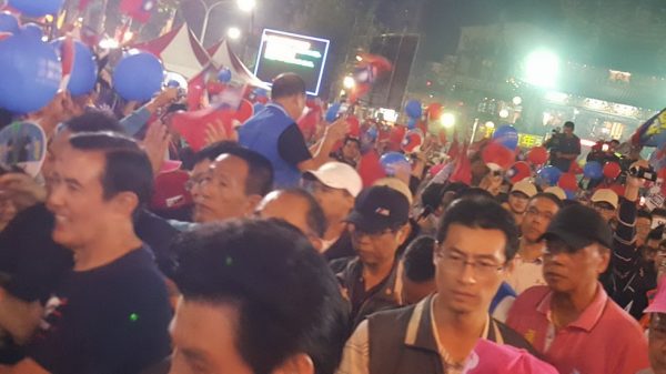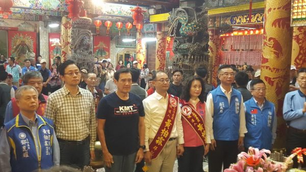 世界客屬團結大會8日晚間在高雄市三民區義民廟舉行,前總統馬英九與國民黨副總統候選人張善政出席,力挺國民黨高雄市立委候選人黃柏霖,衝刺選情。