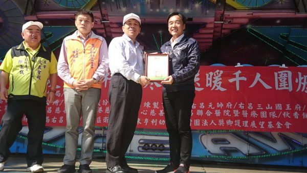 中油公司煉製事業部為了給轄內弱勢長輩及邊緣戶家庭,過年不孤單,特別在農曆春節前夕,結合楠梓區公所、右昌元帥府、右昌三山國王府、左營文武聖殿、大寮天后宮、右昌慈善會、援中港慈心會、濟心慈善會、右昌聯合醫院暨醫療團隊、秋香餅店及大愛義剪隊等11個贊助單位,發揮「關懷零距離、愛心不間斷」精神,17日在右昌三山國王府舉辦「愛在楠梓」寒冬送暖千人圍爐活動。