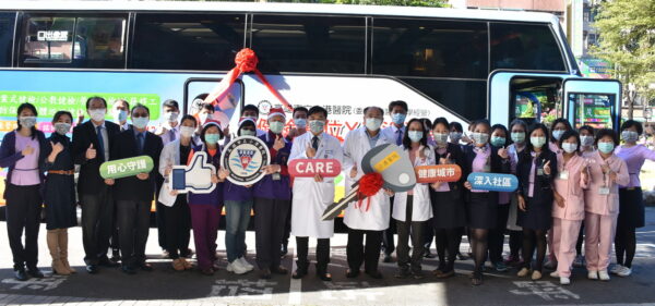 郭昭宏院長二十四日帶領健康管理中心及社區醫學中心喜迎新車到來,郭院長表示,原有的巡迴車使用將近二十二年,因使用頻繁且車齡老舊,影響員工外出巡迴時的安全,二0一九年出場次約五十二場,受檢人數五千三百八十八人。