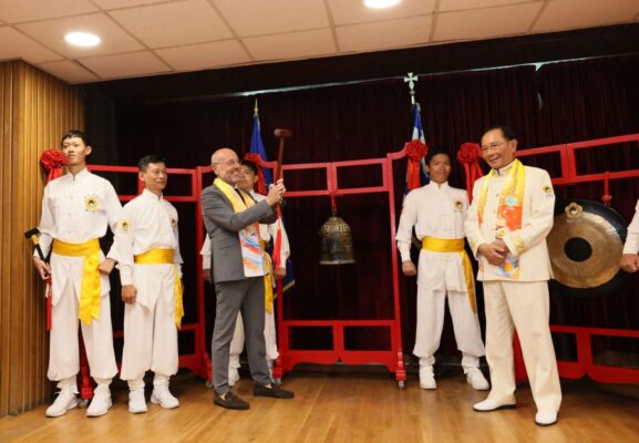 圖2: 希臘健康部副部長 Dimitrios Vartzopoulos鳴響世界之愛和平鐘,祈願世界和平繁榮。