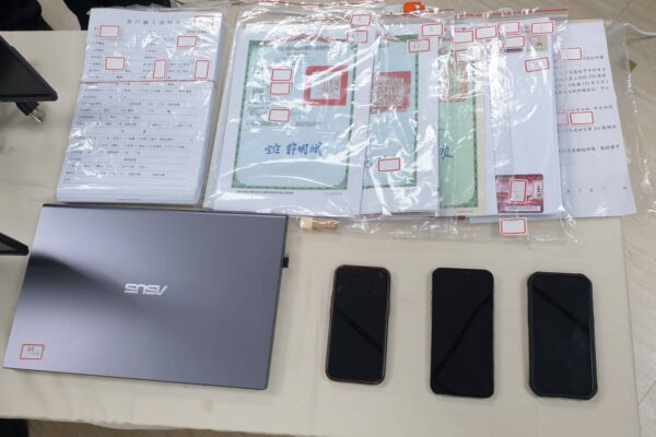圖2:警方查扣電腦、手機、房地產所有權狀等相關證物。