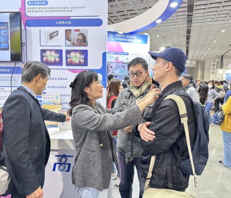 圖2:台灣醫療科技展小港醫院由副院長馮明珠(中)率團展出「智慧化復康巴士就醫流程」、「數位化咀嚼吞嚥檢測暨訓練系統」、「口腔照光板」等醫療服務,展現智慧醫療與高齡照護的最新進展。